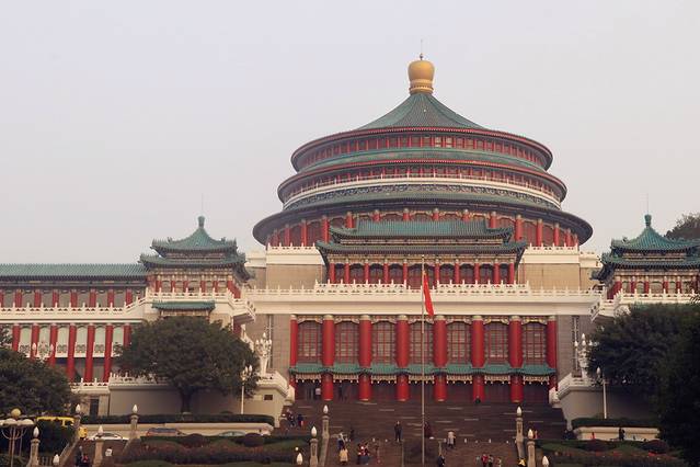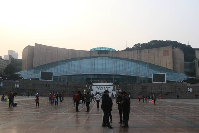 人民大礼堂既是会议中心也是剧场,外形上可以称得上是雄伟壮观了,是重庆的标志性建筑物之一。门票10元,对建筑物不甚感兴趣的我们放弃了进去参观,就在广场上转了转,拍了张照,就走向了对面的三峡博物馆。