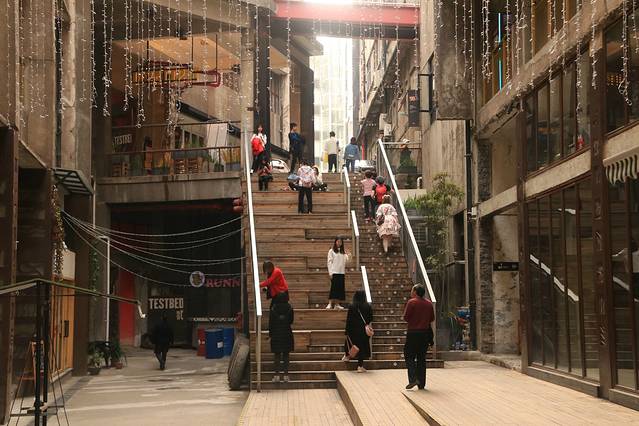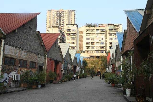 在二厂,你可以看到新与旧的共同存在,一些老旧的大楼被重新装饰,入驻了各类商家,每家小店都装修得格外别致精美,而也有一些断壁残垣仿佛在向游人讲述着它过去的辉煌,这二者的共同存在,才构成了现在的二厂。矛盾吗?矛盾。但当你撇开表面那层薄薄的矛盾感后,你会看到其他都是和谐。这就是新生吧,从另一个层面来说,这也是一种历史的继续和城市的延续。在重庆,这样的场景并不少见。