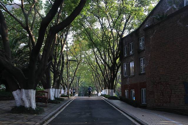 川美的校区面积并不大,没多久就能走完,但整个校园都充斥着一股古朴、幽静、浪漫和创新大胆之感。公路两旁种满了黄桷树,行人走在期间,美得像文艺片的镜头。