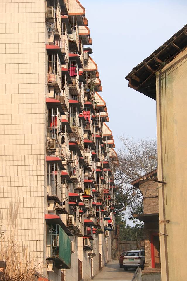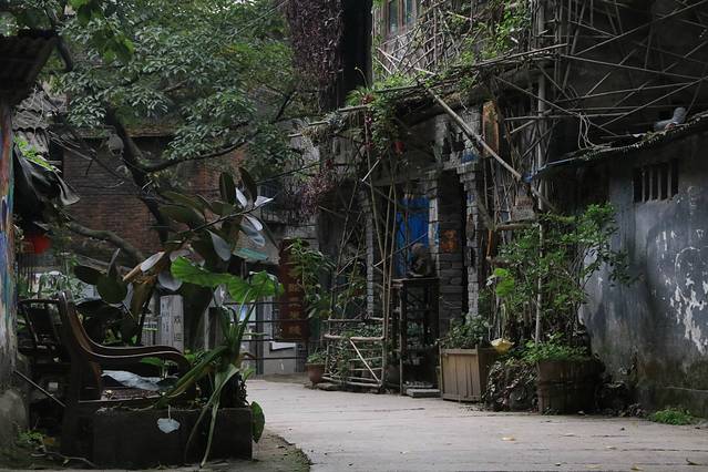 逛着逛着正巧碰上两个阿姨回家,才发现二厂也是有正经居民住宅的,她们边走边摆着龙门阵,一个阿姨摇着头说道:“恁是搞不懂现在的年轻人,晓得勒点儿有啥子好耍的嘛。”我们在她们身后忍不住笑了。刚好抬头,看到斜坡上的居民楼,红色的雨棚层层叠叠,居然有些好看。果然,生活并不缺少美。