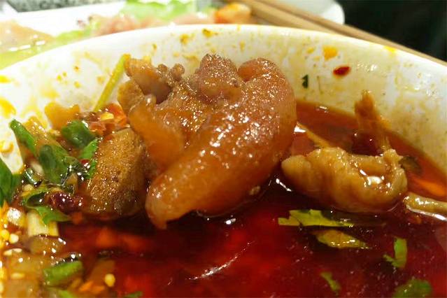 黄桷坪一带有名好吃的餐馆很多,多是开了多年的苍蝇馆子,胡记蹄花汤就是这样的一家店。店面不大,招牌也很简陋,但这么多年来生意和口碑一直很好,有跟着攻略前来的游客,但更多的还是老回头客。