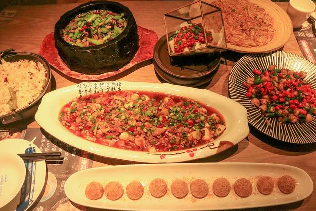 看了正经的碑,解放碑的商圈和周边也是要逛一逛的。这里不仅有各大购物中心和高楼大厦,还有较场口夜市、八一路好吃街等美食天堂,还是重庆美女出没频率最高的地方之一……原本准备奔向好吃街逛吃逛吃的我们被一个在解放碑上班的朋友邀请去WFC (环球金融中心)吃晚饭,盛情难却的同时,也想见识一下她口中夸个不停的重庆最高大上的江湖菜餐厅。