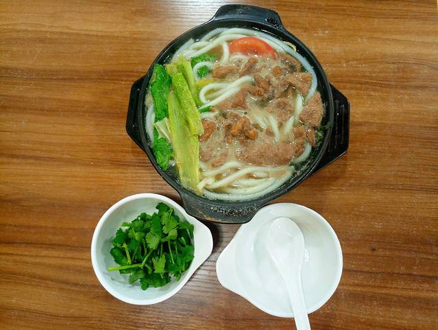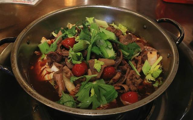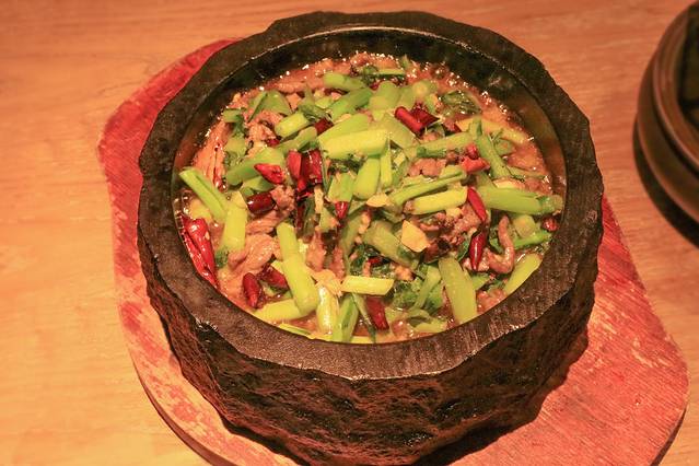 青菜牛肉是招牌中的招牌。因为菜单上写着“已经售出了超过200万份”,所以我和男友都充满了好奇。菜是盛在石锅里,刚上锅还在沸腾,我尝了两口之后便能理解为啥这道菜能卖出那么多了。青菜爽脆而带有清香,牛肉滑嫩而筋道,二者搭配不仅好吃,还下饭。