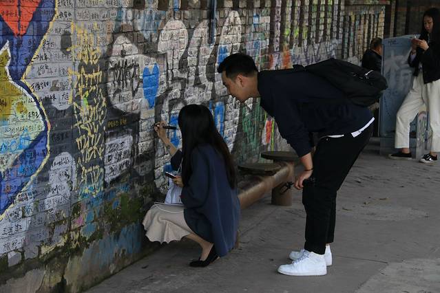 黄桷坪涂鸦街,全长一公里多,据说是目前世界上最长的涂鸦街。