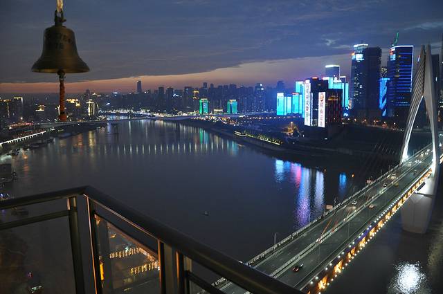 微风号就在洪崖洞旁边的南国丽景——对,就是网上那栋有-8楼的神奇大楼,交通方便不说,最吸引我的是青旅的视线,可以同时把洪崖洞、嘉陵江、千厮门大桥、大剧院、WFC(环球金融中心)等尽收眼底,老板说“广角镜头不够用“还真不是夸张……