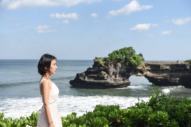 从KUTA海滩 一路开到海神庙大概一个半小时,路上比较拥堵,按照这个进度,我们根本来不及绕去看寺庙,于是我们 就跟向导沟通,只去一个海神庙,然后沿途停几个点参观。奈何这个向导非常固执,一定要按照旅社老板给他的路线进行,但是旅社老板给他的路线安排又和我们昨天商榷的完全不一样最可怕的是他以为我们是2点半赶到机场就好