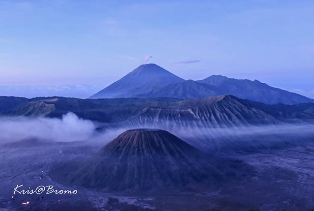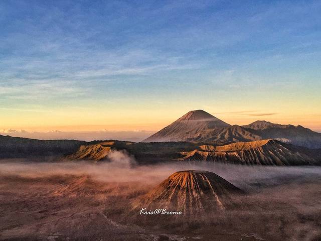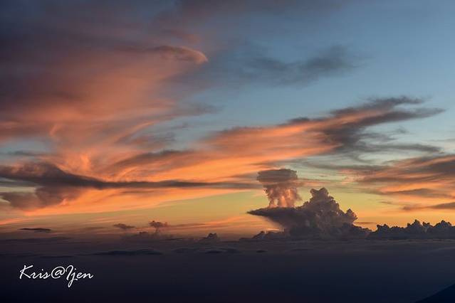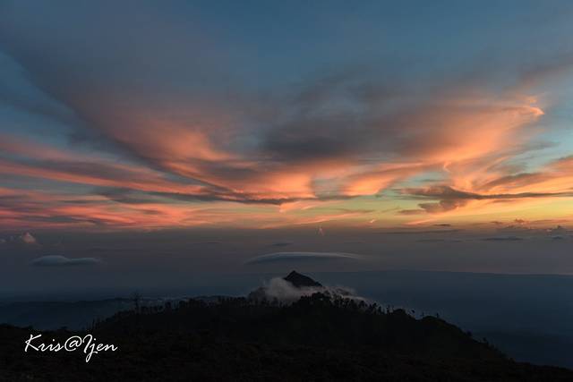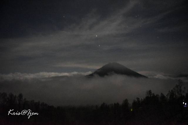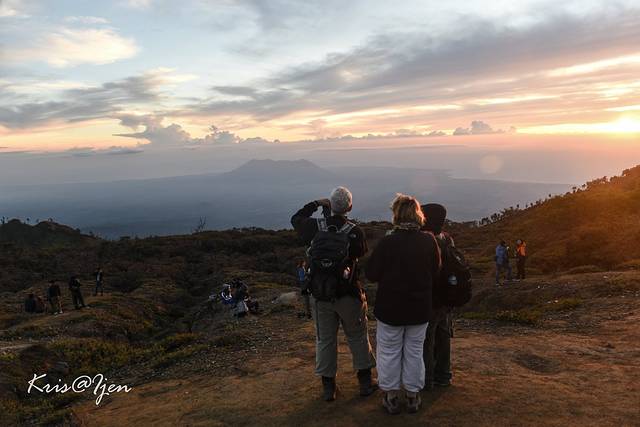 远远的眺望了蓝色火焰,带着一丝小失望打算离开, 向导却拉住我们说要去看日出精疲力竭,山上风又很大,我差点就想婉拒向导了,还好科学家同学坚持要去。