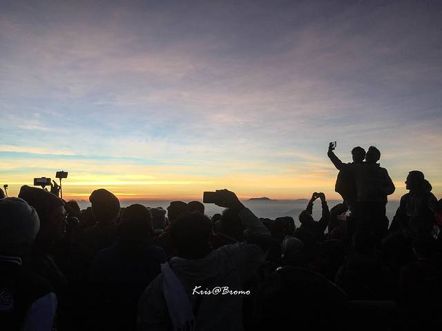 赤道的日出真的非常漫长,等朝阳终于渐渐撒到Bromo的方向,已经是早上5点多 ,人群又是一阵欢呼,居然还有人放起了烟花。。。当地人真的很嗨,还非常热衷自拍