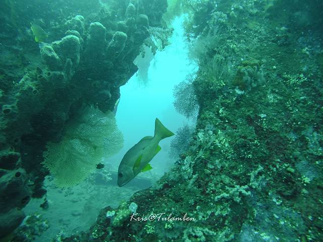 在我们的要求下,第二潜我们去了隔壁的一个断崖,看的东西不算多,但是悬浮在深不见底的悬崖边上也是很神奇的体验,我一不小心的就超过了30米,小伙伴的潜水手表发出了报警声。