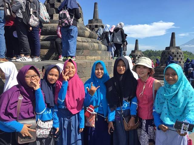 花2,3个小时匆匆的把主塔从上到下,四周都逛了一下,好多当地人在墙角的阴头里坐着休息,羡慕他们的休闲。除去昂贵的门票,铺天盖地的游客以及漫长的小商品出口,婆罗浮屠还是相当的精美壮观。如果能来看日出,想必是更加震撼的。