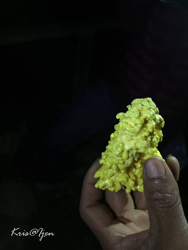 我们的向导给我抱来这么一坨硫磺,我激动的上前接住,没有想到那么小一坨居然非常重,我几乎那捧不动请忽略我重到变形的脸…
