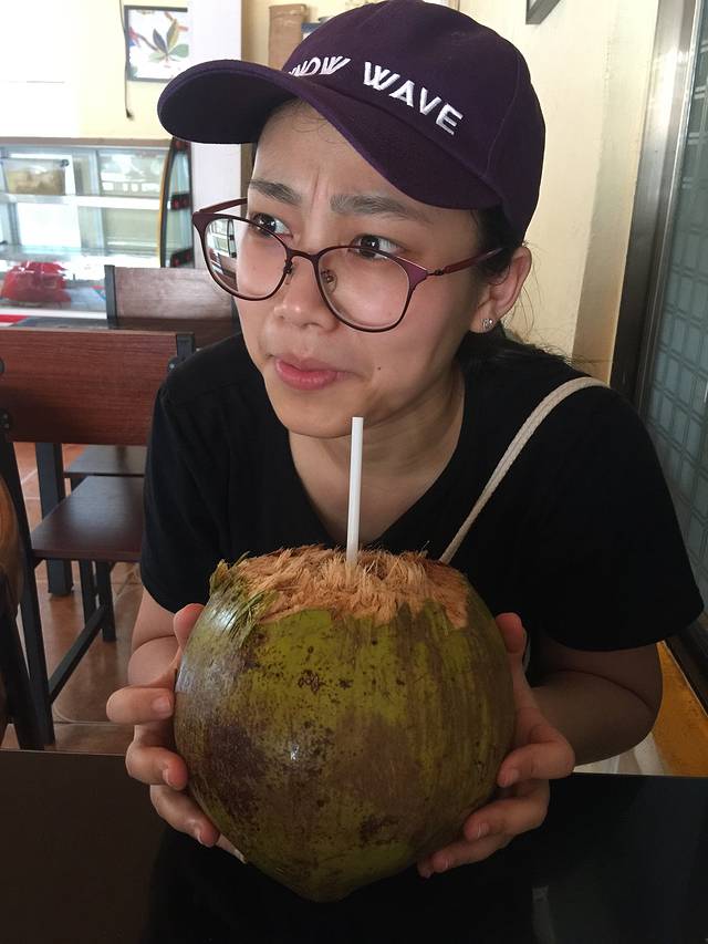 怪石滩到白浪滩9公里,15分钟,停车方便,因为到达时间为下午,太阳有点大,就在岸边喝了个椰子,吃了顿饭就继续前行。