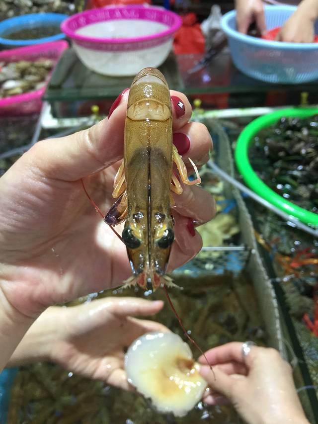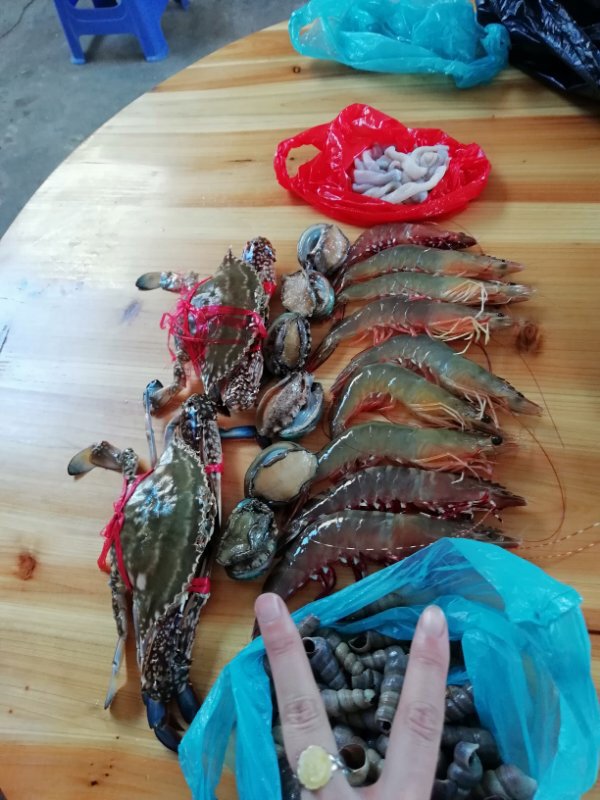 东兴口岸到达万尾农贸海鲜市场需要27公里,40分钟,总指挥之所以要我们这么早起,就是为了让我们有充足的时间逛此站🤤这个海鲜市场的摊主们异常团结,对于外来人员都是统一价格怎么都无法杀价虾子45、圣子王25、小螃蟹20、花甲6、其他记不住了。