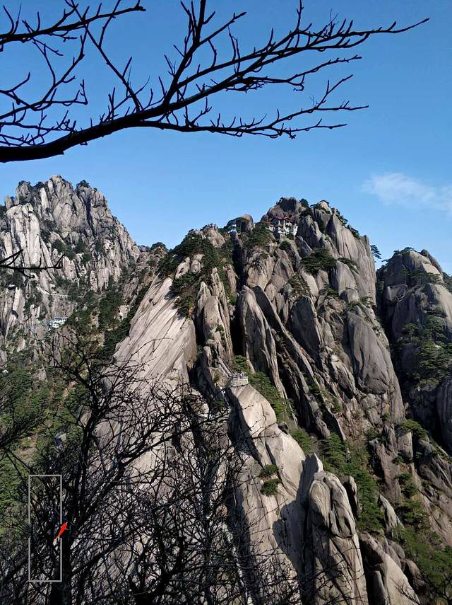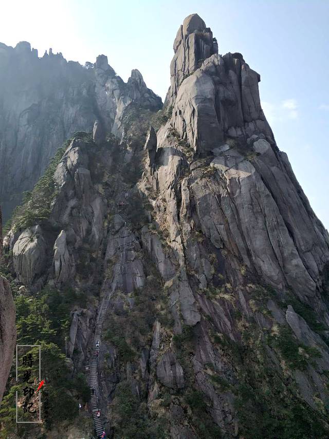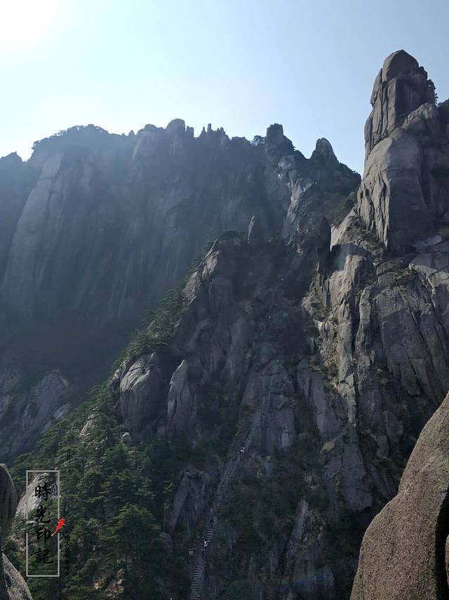 这是在天都峰对面拍的,登山者都变成一个个小点点了。