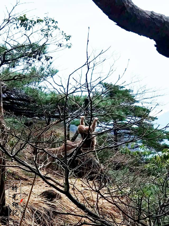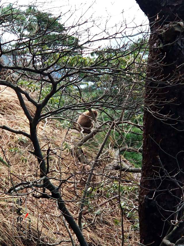 在始信峰休息的时候,突然听到有人说猴子。刚开始就一只小猴子,不一会又来一只,两只戏耍了一会,结伴远去了。
