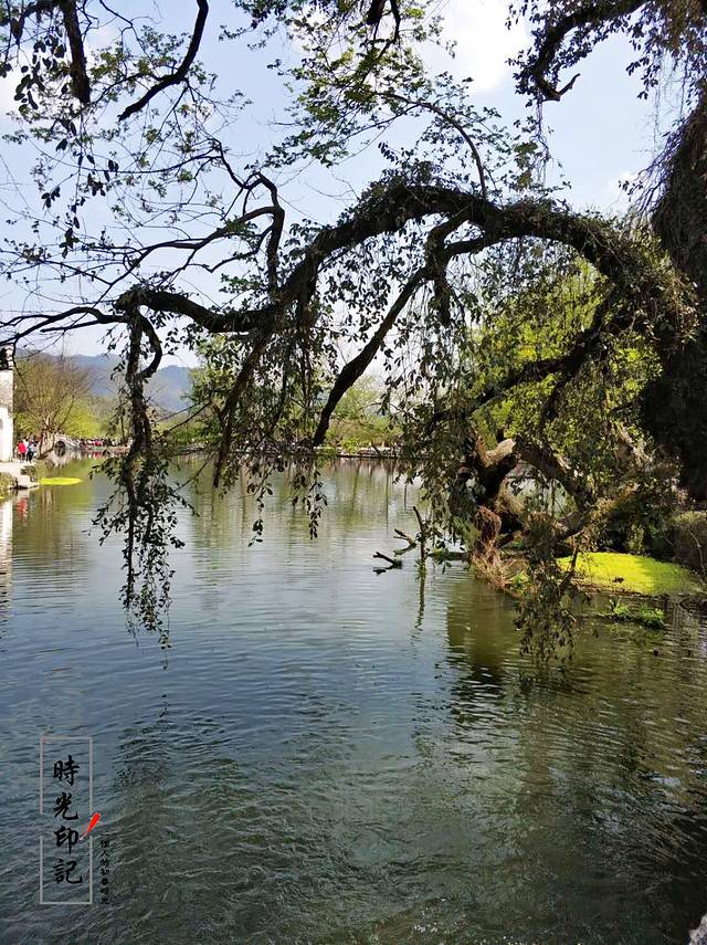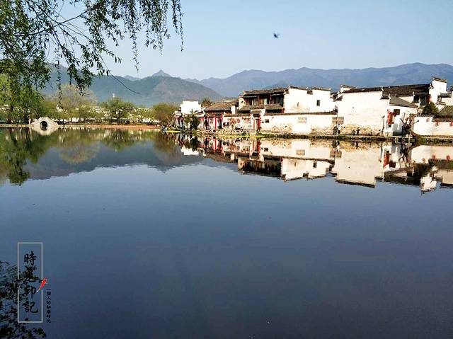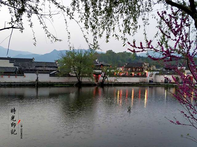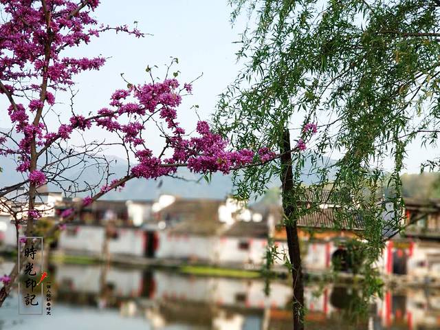 南湖位于宏村村口,宏村古村落仿牛形风水建筑的二个牛胃之一。"无边细雨湿春泥,隔雾时闻小鸟啼;杨柳含颦桃带笑,一边吟过画桥西"。