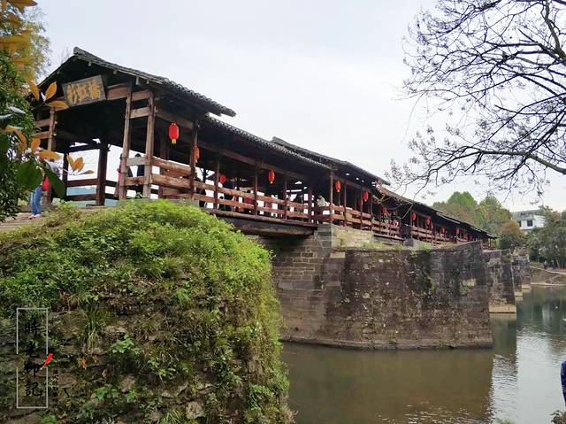 彩虹桥是一种颇有特色的桥——廊桥,所谓廊桥就是一种带顶的桥,这种桥不仅造型优美,最关键的是,它可在雨天里供行人歇脚。这座桥取唐诗“两水夹明镜,双桥落彩虹”的意思取名。桥长140米,桥面宽3米多,4墩5孔,由11座廊亭组成。彩虹桥周围景色优美,青山如黛,碧水澄清,坐在这里稍作休憩,浏览四周风光,会让人深深体验到婺源之美。彩虹桥历史悠久,建于南宋,距今已有八百多年,是古徽州最古老、最长的廊桥,被众多媒体誉为“中国最美的廊桥之一”。