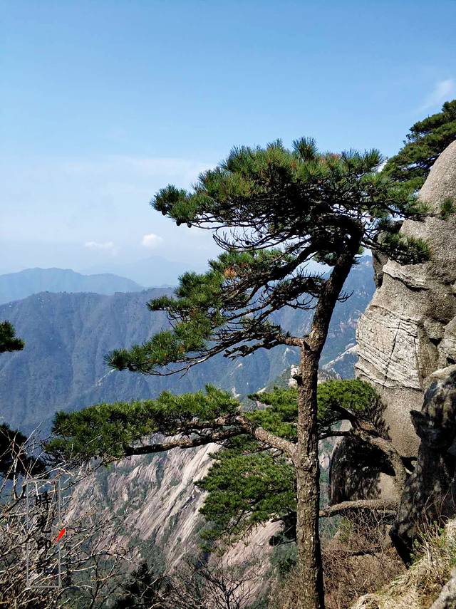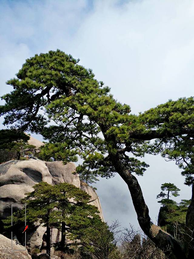 听客栈老板说,原来的松树已经死掉了,1982年后的十几年看到的是一树塑料树,直到2005年才成功移栽一棵60多年树龄的黄山松。