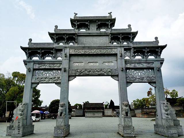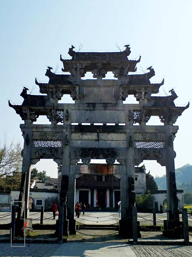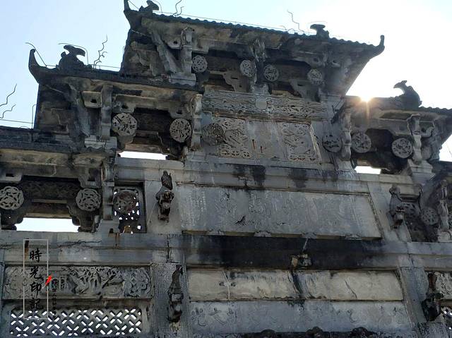 胡文光刺史坊与徽州各地的牌坊式样不同,如歙县的牌坊大都是四根大柱直冲云霄,叫“冲天柱式”;而眼前的这座牌坊有5个层次分明的楼阁,叫“楼阁式”,所以准确些该称之牌楼。它高12.3米,宽9.95米,石雕古朴精湛,造型富丽堂皇。正楼匾的上方雕的是“恩荣”