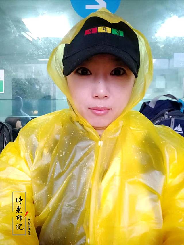 下索道,雨已经停了,赶快脱掉雨衣,留个影。