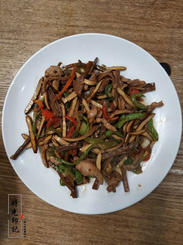 徽州小炒,由豆腐干、红椒、青椒、腊肉炒制而成。咸淡适中,比较下饭。
