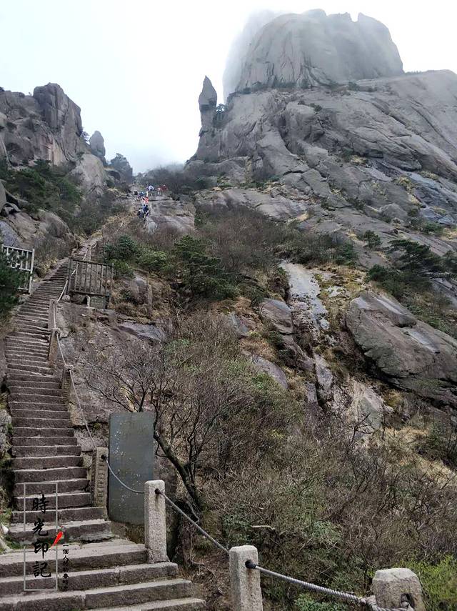 天都峰很陡峭,台阶也很窄,最宽的地方也只能同时通过2个,为了安全,爬山过程中没有拍照,也没有精力拍照,因为已经累成狗了。不知道歇了几回,终于到峰顶。