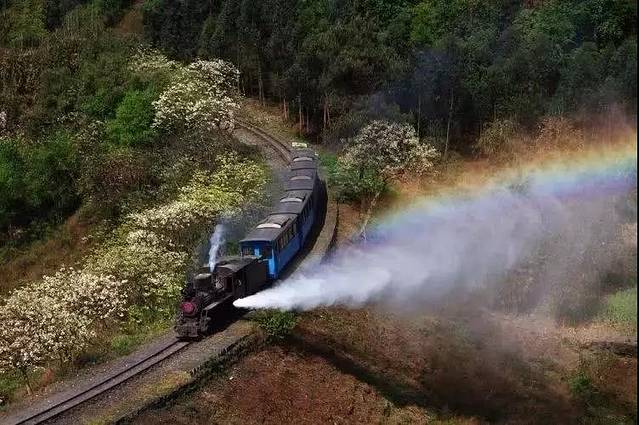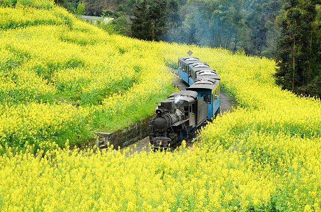它最经典的画面,就是每年三四月份,铁道两旁金黄的油菜花盛开遍田野,小火车吐着蒸汽,摇摇晃晃地穿过花田。有些人为了看一眼蒸汽小火车缓缓驶过油菜花田的梦幻美景,甚至从世界各地赶来!