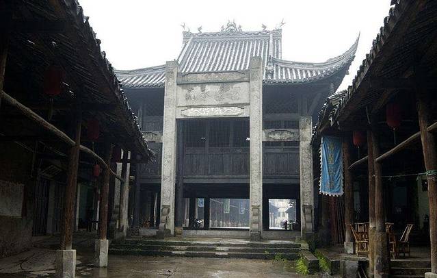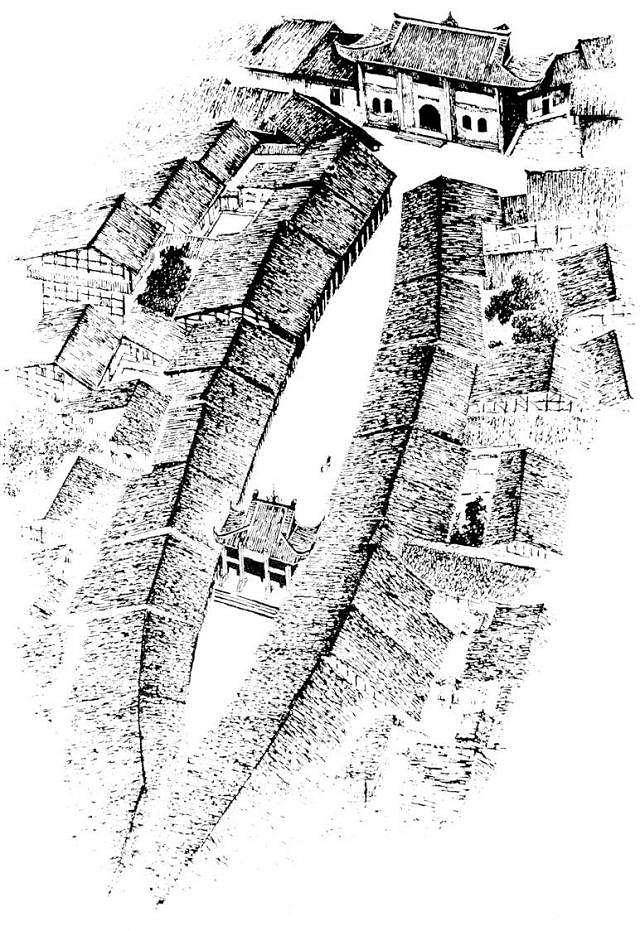 --罗城古镇始建于明代,建筑布局极为独特,全镇坐落于山顶,街道房舍如一艘航船,古镇主街凉厅街俗称“船形街”。