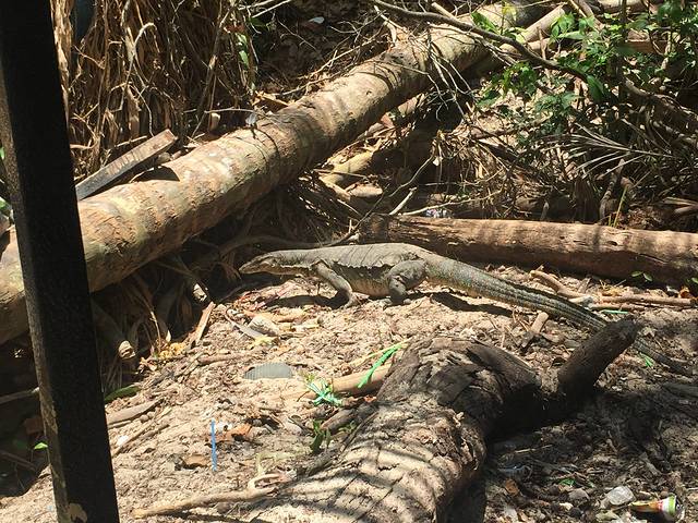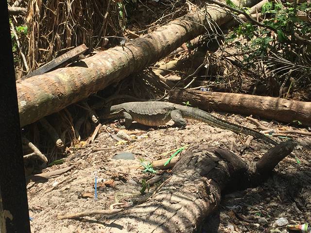 到了岛上,就开始吃饭,伙食还可以,虾啊,蟹啊,都有 ,然后这个岛上面还有蜥蜴,吃着吃着饭,蜥蜴就出现了,只是,蜥蜴怕当地人,当地人一吓就跑开了。