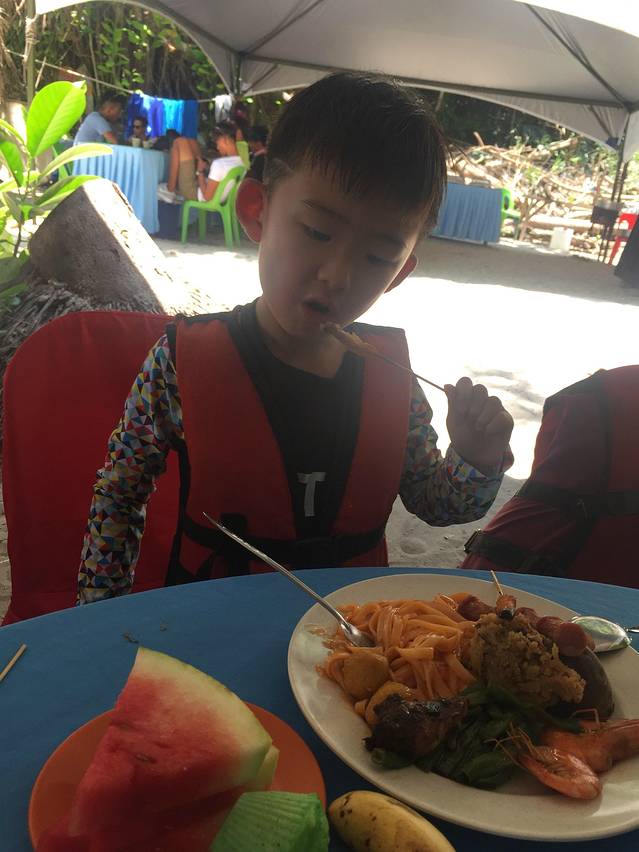 小孔兴奋的跑去看了看,表示终于看到自由的活的蜥蜴啦!!!!吃了饭休息了一下,就准备下水浮潜,其实就是在海边浮潜,水很浅,每个人穿上救生衣,就下水了,其实就是自由活动,下午3点钟集合准备返程。特别提醒的是,如果大家要潜水,一定要自备潜水工具,咬嘴和潜水镜,干净卫生。