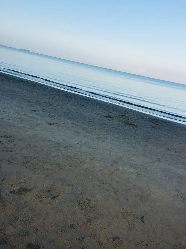 这是早上6点的丹绒亚路海滩,天已经亮了。丹绒亚路海滩离沙巴机场很近,由于我们航班到的比较早去酒店太早了,我们就来到海滩,准备看一下清晨的海滩,由于丹绒亚路海滩是朝西边的,所以是看不了日出的,但是听说这里的日落很美。小朋友一到海滩就很兴奋,看到海滩上面很多很多的小洞,他说这是海蟹挖的洞,期初我还不相信,后来证明他说的是对的,确实是海蟹挖的洞