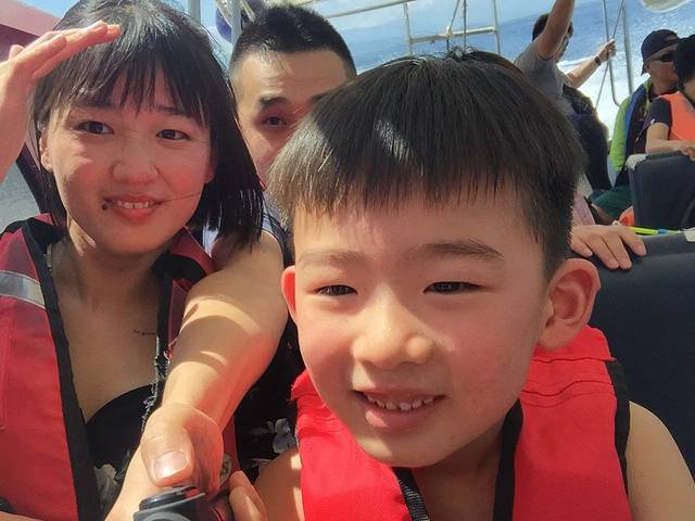 在美人鱼岛浮潜了的,可是由于我不会游泳,我老公会游,可是游的不好,我丫会游,可是也是会游一点皮毛。第一次浮潜是游船开到海中央浮潜。我只想说完全HOLD不住,即使穿着救身衣,明知道沉不下去,可是在这片大海里完全控制不住自己的身体,也许是海太深浮力太大,还是浪太大,反正喝了不少海水,另外海水真他妈难喝,咸死人。带了水下相机,由于是第一次潜伏,且潜伏过程中毫无体验感,全程手舞足蹈。所以美人鱼岛没有水下照片,可是后面有双岛游的水下照片。
