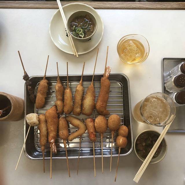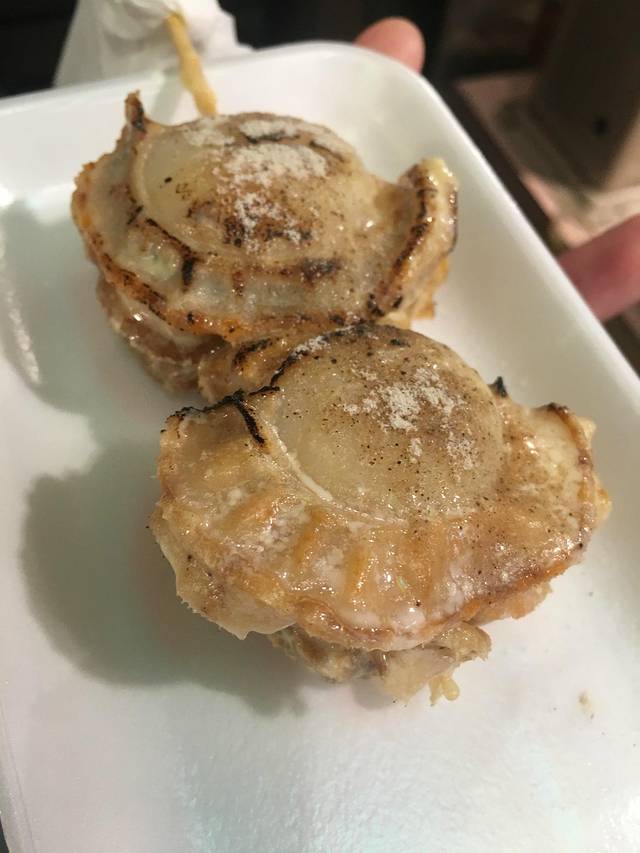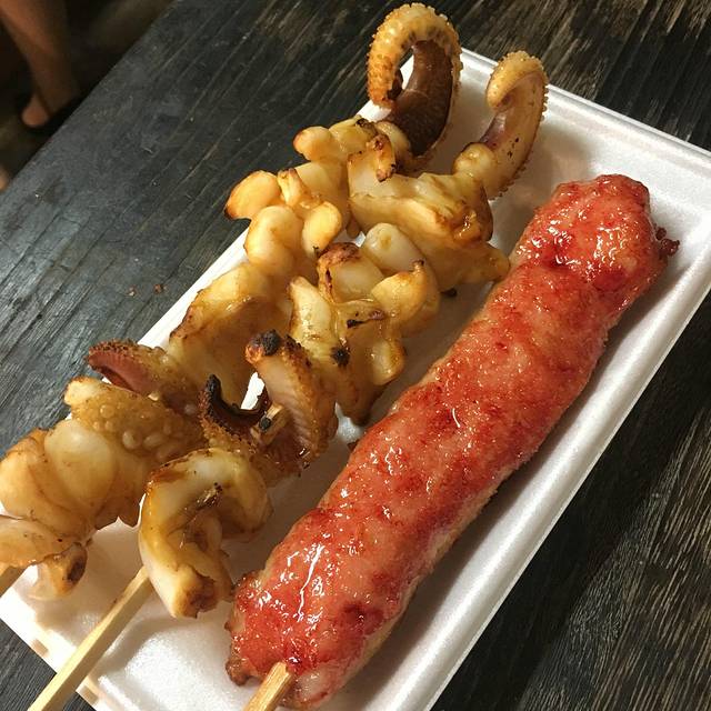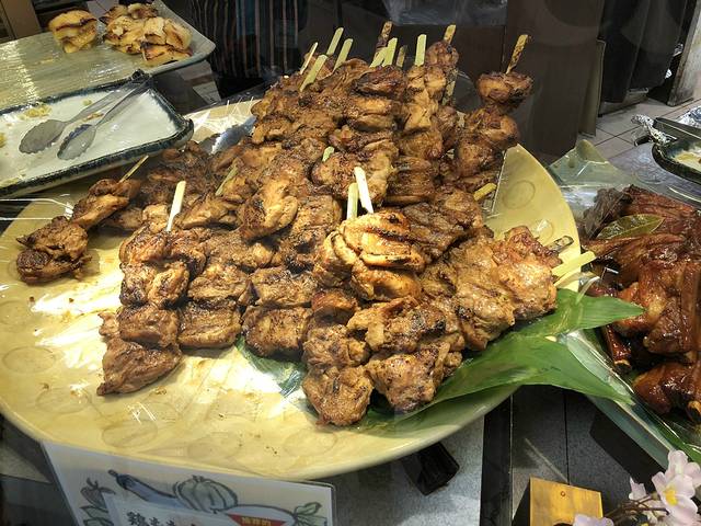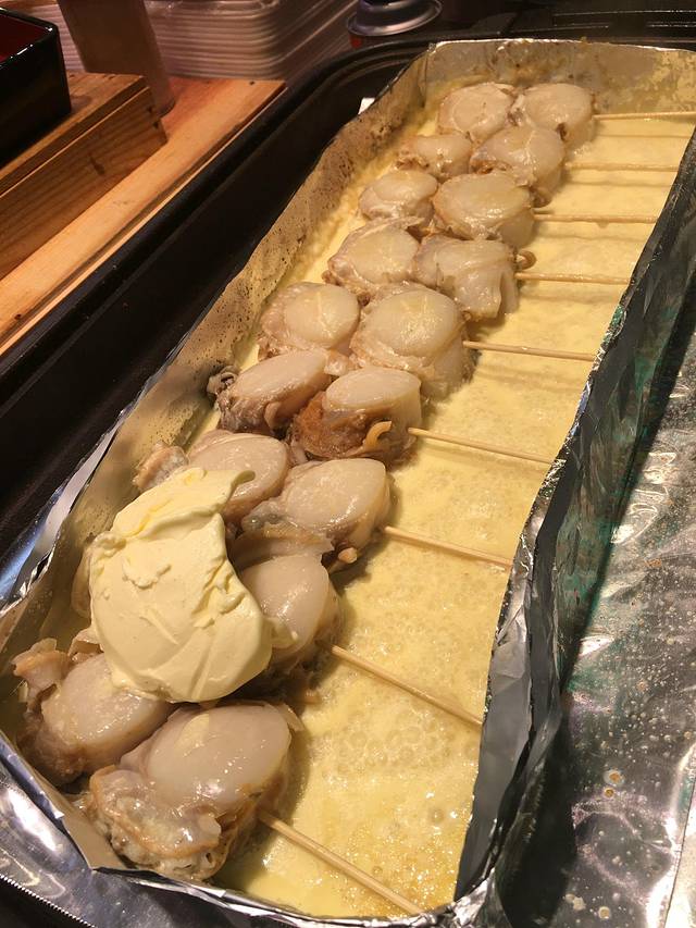 也是参考攻略里的有名的元祖串串烧,白菜可以续碟,店内卫生一般,客人食用后的白菜碟直接放在新的白菜碟上···