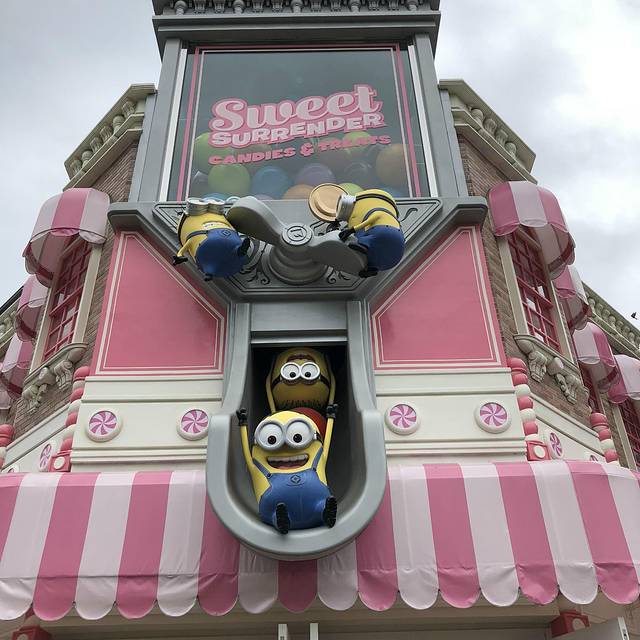 下来的时候觉得很饿,没有体力,倔强的去寻找大火鸡腿,但是途中又遇到了小黄人系列~~于是我们去排队了····小黄人带我们飞!比较童趣的“过山车”,出来后发现小黄人周边~~