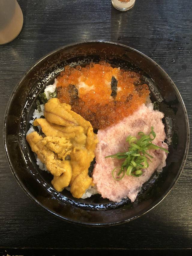 服务员很快就把三份饭上了,图文相符,味道·······呕!非常不新鲜的海胆,略有腥臭味且味道一言难尽,反思怎么会有70多块钱就能吃上海胆饭呢?结果真的很不美味,我们没有吃完!把饭吃了就离开了。。