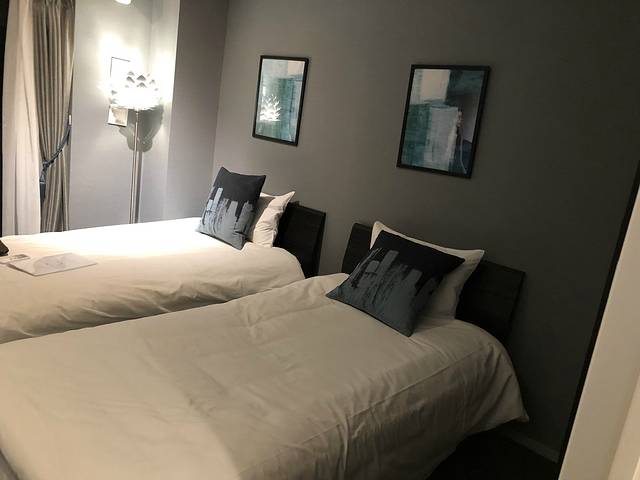 其实严格意义上来说,这只是一家公寓,并不是酒店,装修很新,且是自助办理入住。但是我订的是豪华三人间,酒店页面是说明两张双人床,实际却是两张单人床,宽度在90-100cm,比一般酒店都要小,无奈我们只好拼床睡,其次是,入住当晚,我出现了不同程度的皮肤抓挠,后来的几天里,我的朋友也是起疹子等等,所以对于床和卫生这一点,感到非常不满意。