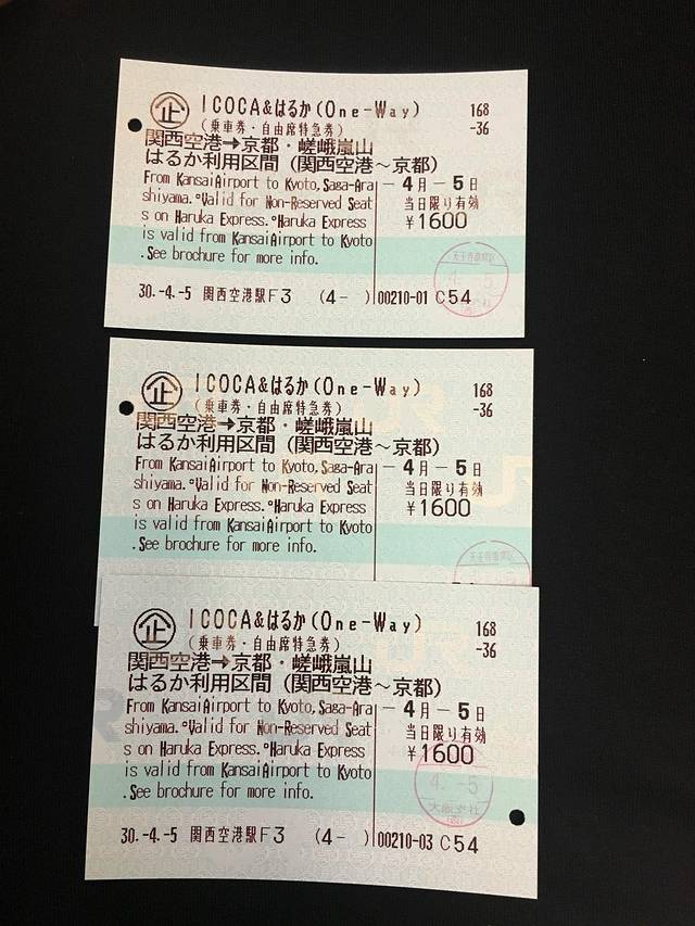 到达关西机场后,入境很快,客流没有我想象中的多,但是也花了一点时间排队。入境后由瑾瑾酱带我们去取 ICOCA & HARUKA套票,两张HelloKitty和雷神的画面,并搭乘JR到达京都,