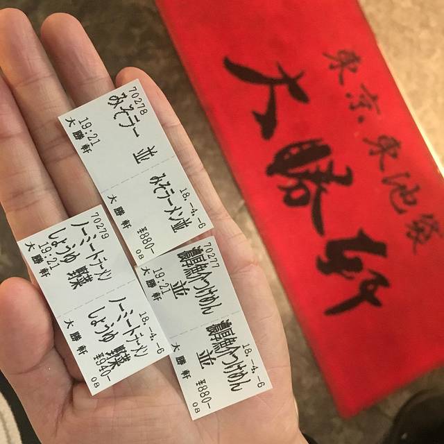 中午一点多,店内坐满了客。需在门口买票后把票交给服务员即可完成点餐,不得不说,这位服务员小哥有点着急,一直在催促我们,但实际又没有其他排队的客人···