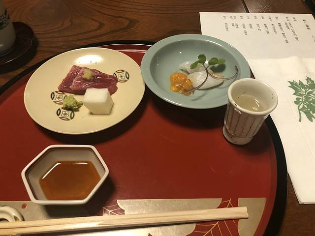 一到晚上八点就渐渐冷清的商业区,好不容易看到若狭家居然营业到十点半!真的非常感动!立马冲进去点餐,价格不低,但是我们还是选择了海胆饭!