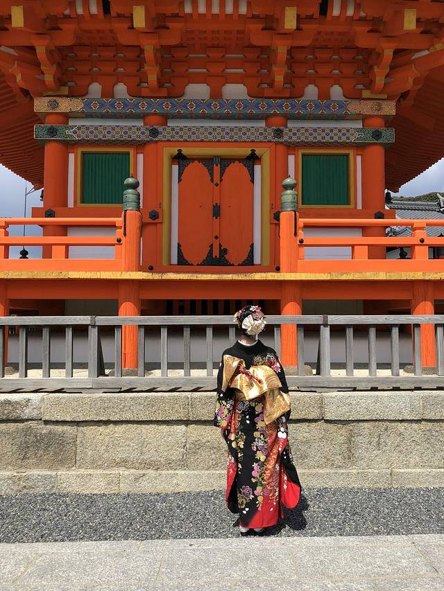 穿戴完毕我们一路杀去清水寺,人真多,拍照一分钟,等位半小时