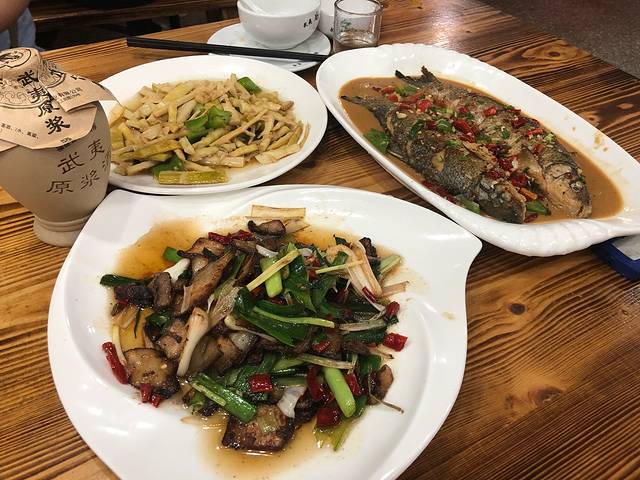 这家也值得推荐,但店面招牌是:南昌大排档,里面所有菜都有实物展示,看中哪个这拿相应菜品的卡片,最后到下单台下单即可,所以不会有因人下菜碟的情况。菜量不错,味道也很好,辣度也可调整,实惠,环境也好。还有一个推荐,饭店旁边有个菜市场,里边卖的糯米甜酒很好喝,10元一大可乐瓶,发酵的恰到好处。