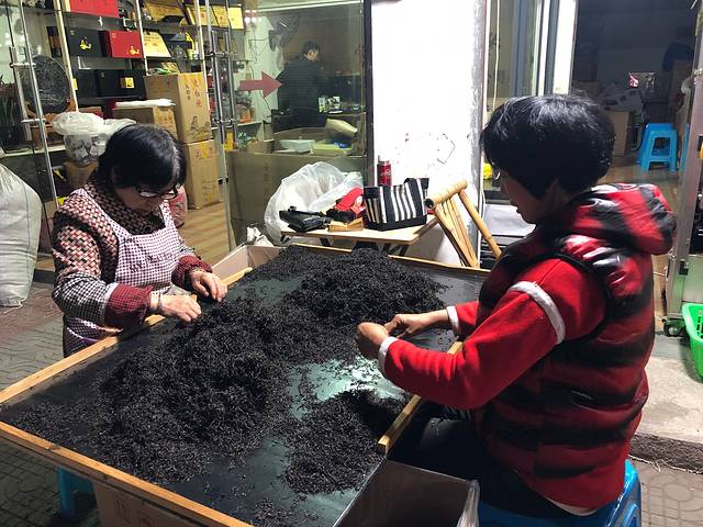 晚饭后到街上逛了一下,街道两边有很多的饮食店和茶叶店,都很热情,每家茶叶店都可以免费去喝茶🍵,下图这家店的老板还免费送了茶叶让我们品尝。这里的茶叶生意配套齐全。买茶叶包装的店也很多,各种包装应有尽有。