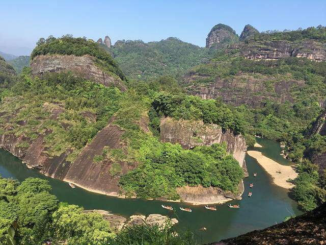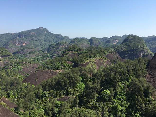 早上8:00多从酒店出发去武夷山景区,到达景区南门,步行几百米便可乘观光车到天游峰景区,便干始了登山之旅,阶梯确实比较陡,对于年龄大的人不太容易,好多老人上到一半就原路返回了。山高400多米,我们早上登不是很热,大概一个小时便可登顶,主要取决于前面人的速度。在出口处有卖大红袍茶叶蛋的,很多网友推荐,就买了两个7元,我认为味道还行,老公说偏咸,茶味不足。