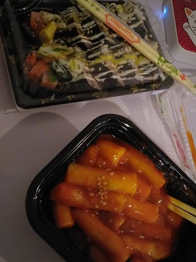 就在客栈楼下,味道都不错,炒年糕有点辣。
