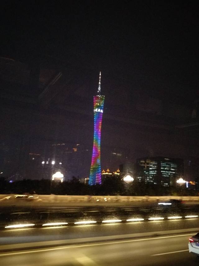 在旅游巴士上拍的,绚丽,妖娆的广州小蛮腰。