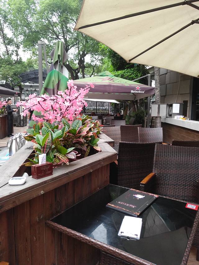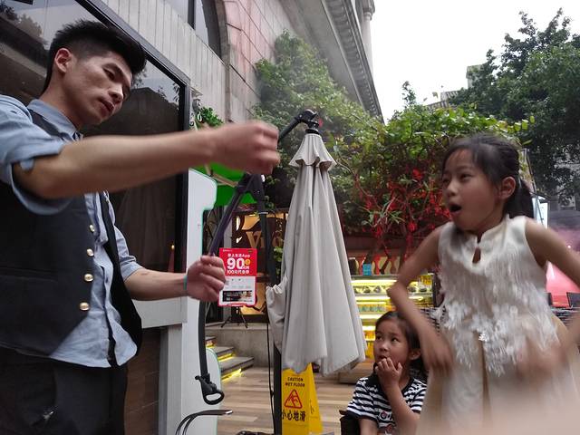 在沙面逛到下午4点多,因为中餐没有好好吃,三个人都饿了,找了好久,没找到小吃店,返回酒店担心堵车,准备过天桥到对面坐公交的时候就看到了这家很漂亮的餐厅,想着可能不会便宜,不过既然出来玩,偶尔还是要小奢侈一把,就进去了。结果价格并没有很高,当然也没点很贵的菜,只点了几个主食。每个人都要收茶位费,8元/人,小孩也要。看在美丽的用餐环境份上,收就收吧。欢乐的魔法表演,7点开始