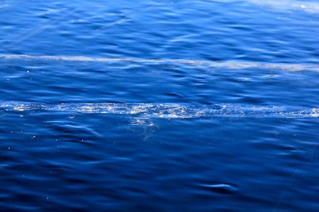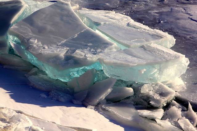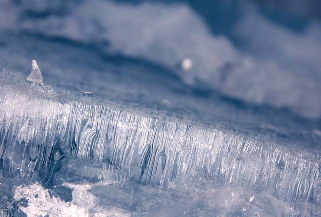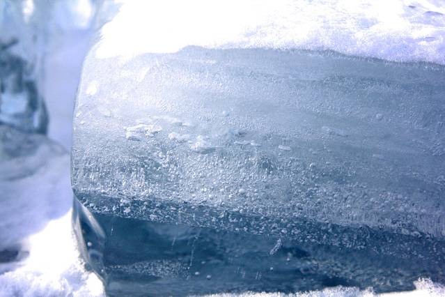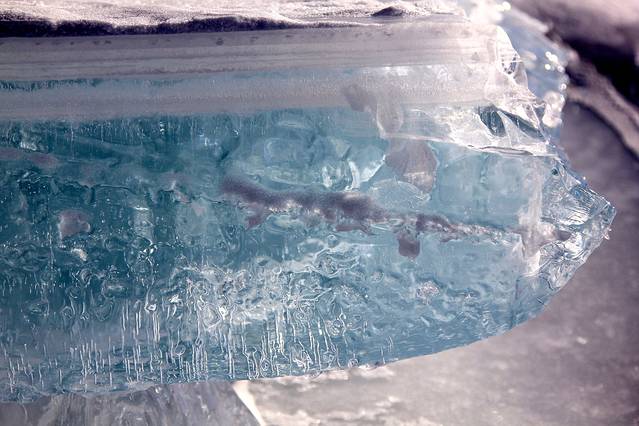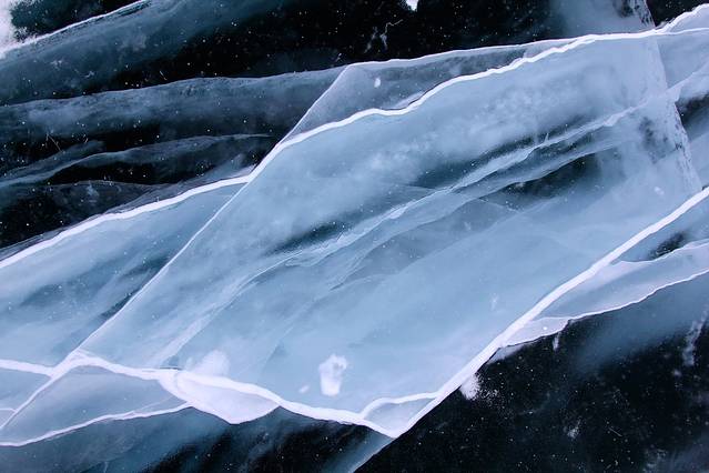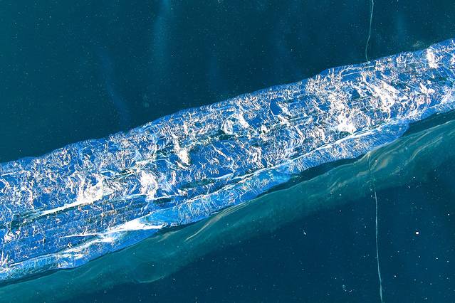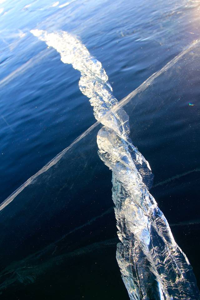 利斯特维扬卡,平整冰面下有麻花绳状的冰裂,清晰可见