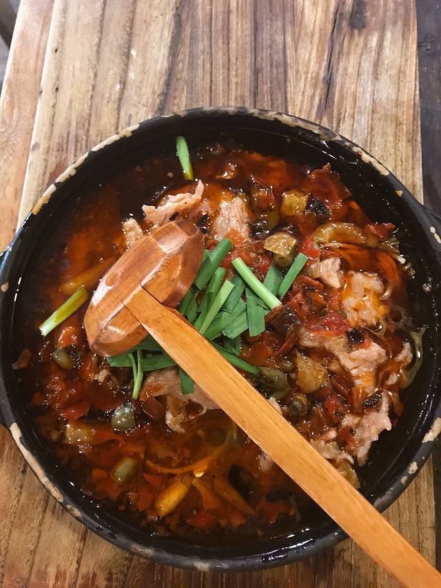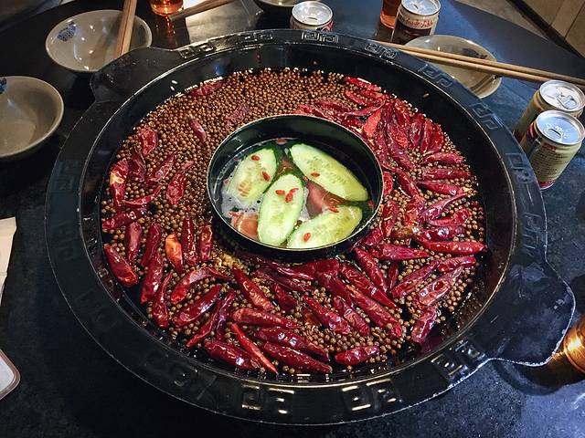 逛完二厂才五点多,正好可以去本地人推荐的洞亭火锅,不然去晚了至少要排一个小时以上。我们到的时候还排了半个小时。