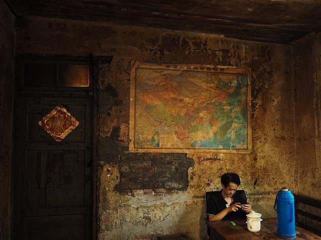 都已经到川美了,交通茶馆是必去的,从川美一直沿着路走拐个弯差不多就到了,一个很小很破的门,上面挂着交通茶馆,进去后别有洞天。