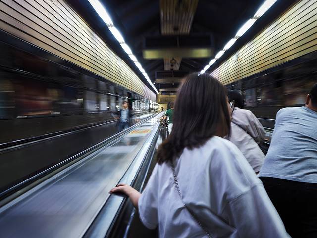 去长江索道的时候正好路过两路口轻轨站,亚洲第二长的扶梯——皇冠大扶梯就在这里,怎么可以缺席呢?下了轻轨,一路沿着路标找到了皇冠大扶梯,票价两元,可刷畅通卡,而且是有人收钱的,就算没有零钱也没关系,可以给你换。